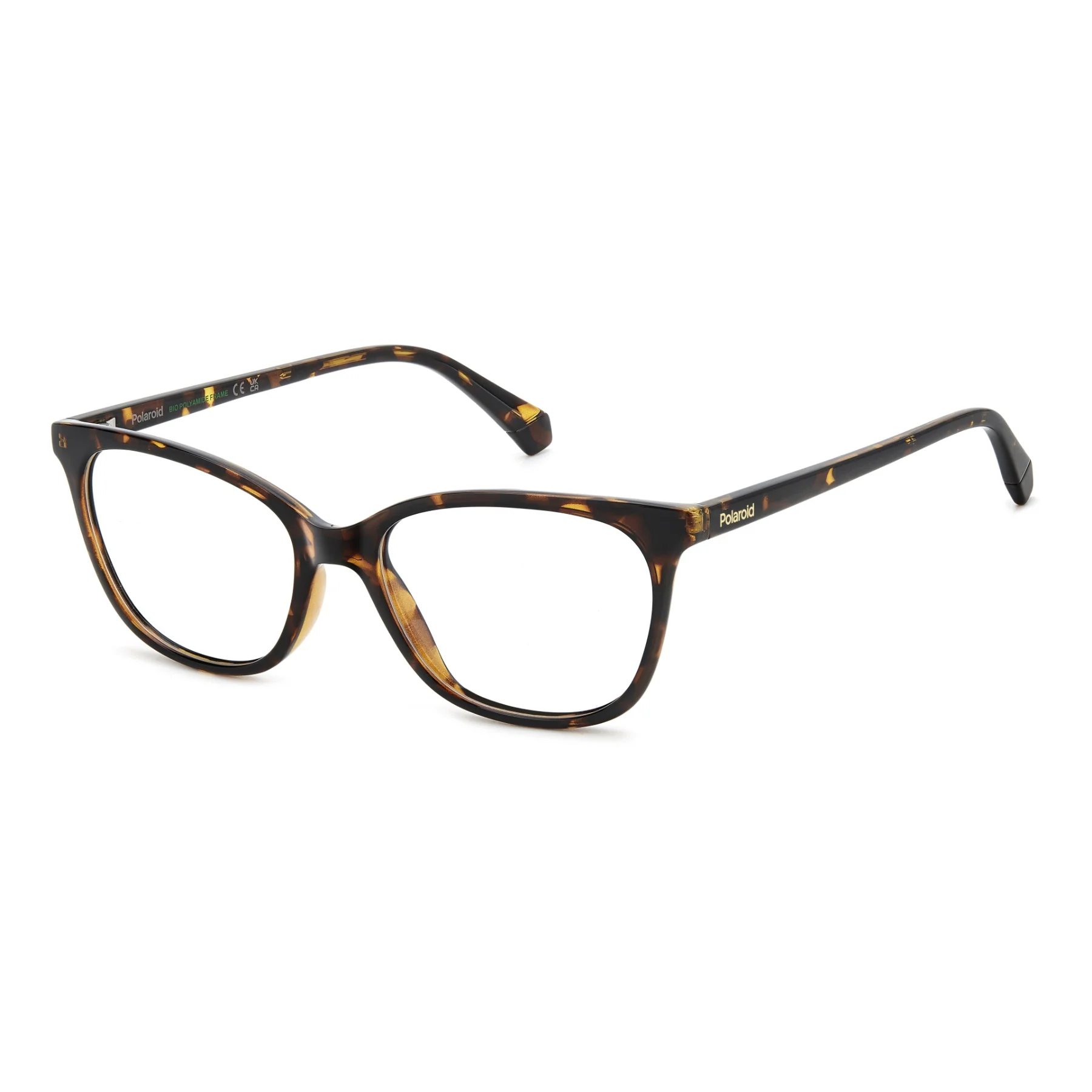A linear yet noteworthy design defines these women’s eyeglasses by Polaroid. What makes them unique are the slender and lightweight shapes made of eco-polyamide, synonymous with a conscious choice. The slight cat-eye shape is feminine and discreet, perfect for days at the office and time off. The colour palette? Classic for timeless options, or two-tone for a Pop accent with Polaroid character.